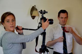 This was an extremely small production. It was shot on a Canon 5d and a Nikon d7000 with a variety of different lenses. From principal photography to wrapping post, in all, it took around 5 months. The time could have been cut in half with a heftier budget, but I couldn’t have wished for better help.